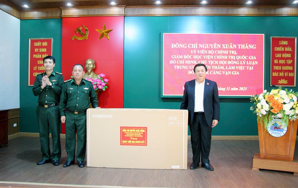GS,TS Nguyễn Xuân Thắng tặng quà Đồn Biên phòng Cửa khẩu Cảng Vạn Gia