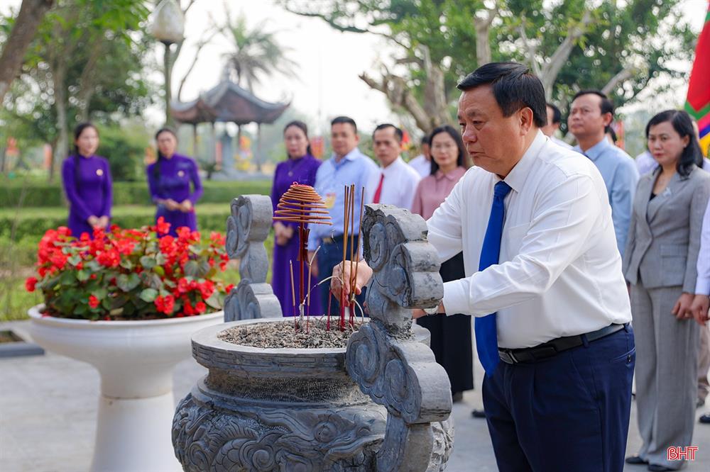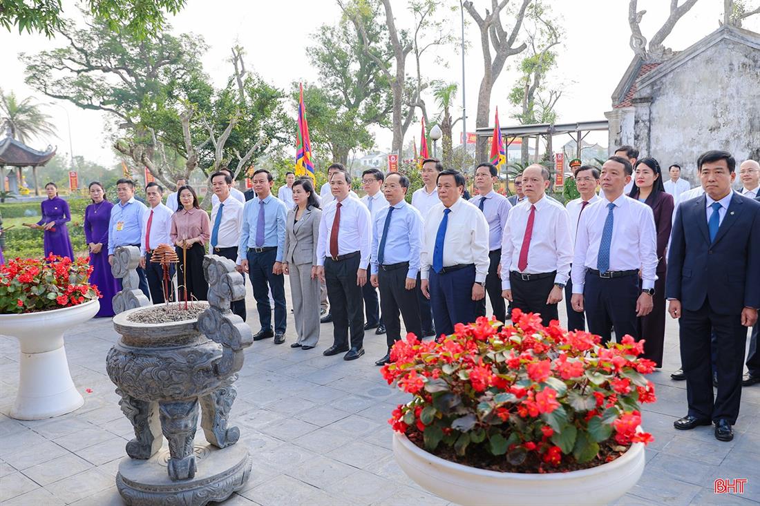 Đồng chí Nguyễn Xuân Thắng và các đại biểu dâng hương Đại thi hào Nguyễn Du.
