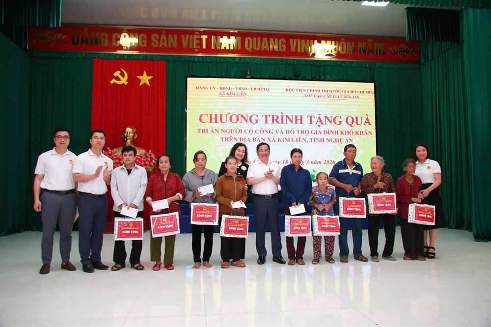 Trong chương trình nghiên cứu thực tế, Lớp Cao cấp lý luận chính trị K76.A10 đã dâng hương, dâng hoa tại Khu Di tích lịch sử Kim Liên, bày tỏ lòng thành kính đối với Chủ tịch Hồ Chí Minh; tổ chức nhiều hoạt động tri ân và an sinh xã hội tại xã Kim Liên như: trao tặng quà cho một số gia đình có công với Cách mạng và hỗ trợ một số gia đình có hoàn cảnh khó khăn; trao tặng 14.780 cuốn sách cho Tủ sách UBND và ba trường học (Trường Tiểu học Làng Sen, Trường Tiểu học Hoàng Trù, Trường Trung học cơ sở Kim Liên) với tổng giá trị hơn 506 triệu đồng.
