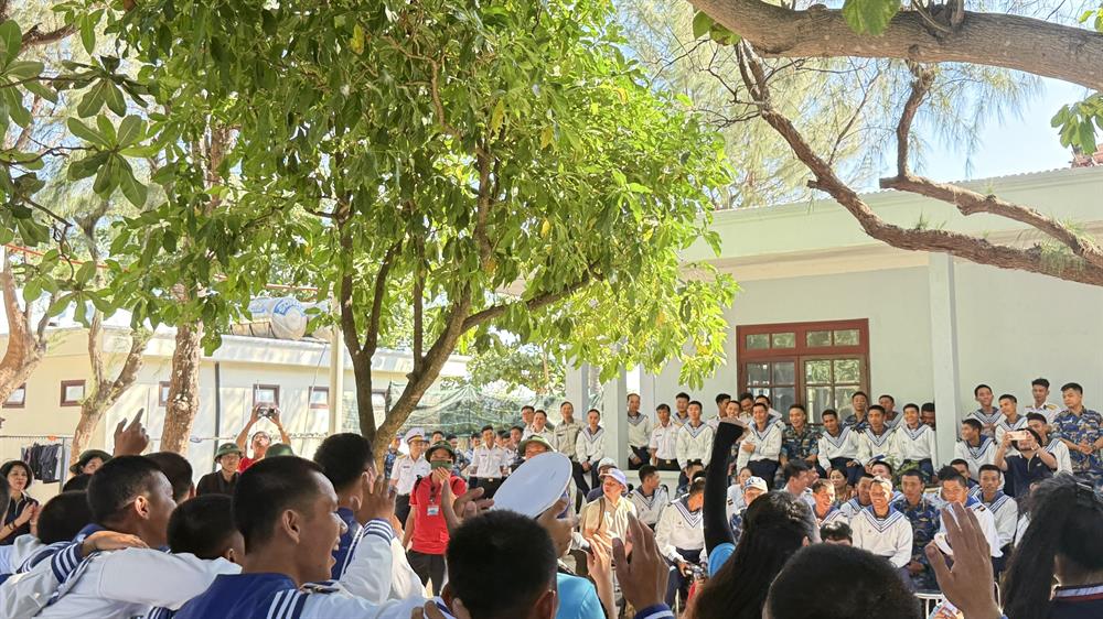 Cán bộ, chiến sĩ trên đảo Sơn Ca hòa nhịp với tiết mục văn nghệ của Đoàn Công tác số 8