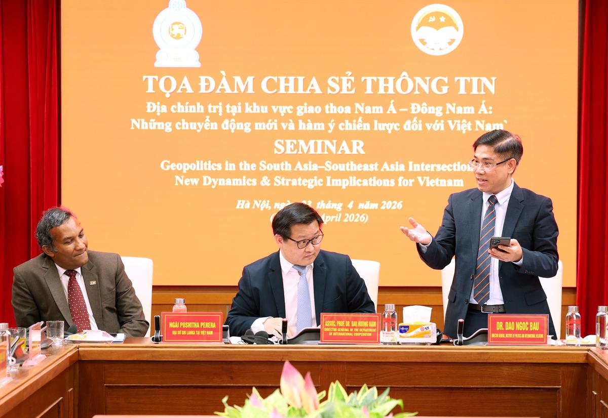 Chia sẻ nhận định tại tọa đàm, GS Asanga Abeyagoonasekera cho rằng, trước đây, Nam Á và Đông Nam Á thường được phân tách thành hai không gian địa chính trị riêng biệt. Ngày nay, nhận định đó đã không còn phù hợp nữa. Ấn Độ Dương và Biển Đông đã hợp thành một chính thể chiến lược thống nhất. Những tuyến đường thương mại, dòng chảy năng lượng, và hạ tầng chiến lược đã gắn kết hai khu vực này theo cách mà bất kỳ sự gián đoạn nào ở khu vực này cũng sẽ lập tức tác động tới khu vực còn lại. Đơn cử như: những tác động của tình hình eo biển Hormuz đã có sức ảnh hưởng rộng khắp thông qua những cú sốc giá cả, gián đoạn chuỗi cung ứng và bất ổn kinh tế. Chiến tranh ngày nay không chỉ đi kèm tên lửa, mà còn là giá cả, không chỉ với binh lính, mà còn là sự khan hiếm. Sự ổn định, vốn từng được coi là điều hiển nhiên, nay trở thành có điều kiện. Đây chính là sự chuyển đổi đặc trưng của địa chính trị đương đại.