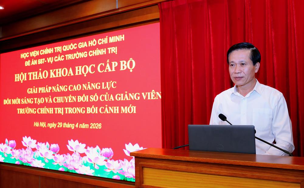 Sáng 29/4/2026, Học viện Chính trị quốc gia Hồ Chí Minh tổ chức Hội thảo khoa học với chủ đề “Giải pháp nâng cao năng lực đổi mới sáng tạo và chuyển đổi số của giảng viên trường chính trị trong bối cảnh mới” bằng hình thức trực tiếp kết hợp trực tuyến từ Trung tâm Học viện đến các trường chính trị tỉnh, thành phố trên cả nước. PGS,TS Hoàng Phúc Lâm, Phó Bí thư Đảng uỷ, Phó Giám đốc Học viện Chính trị quốc gia Hồ Chí Minh dự và chủ trì hội thảo.