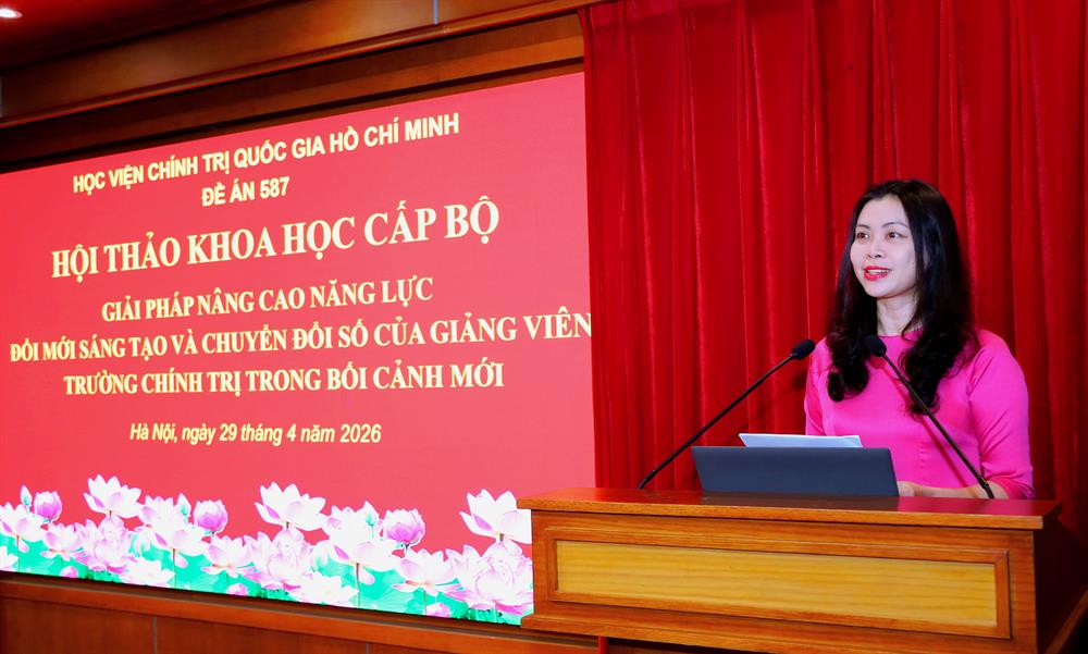 Phát biểu đề dẫn hội thảo, TS Nguyễn Thị Thanh Nhàn, Vụ trưởng Vụ Các trường chính trị nhấn mạnh, trong bối cảnh thế giới đang bước vào giai đoạn chuyển đổi sâu sắc, khoa học, công nghệ, đổi mới sáng tạo và chuyển đổi số đã trở thành động lực cốt lõi của tăng trưởng và phát triển. Đối với hệ thống các trường chính trị, yêu cầu đặt ra không còn là “có chuyển đổi số hay không”, mà là chuyển đổi ở mức độ nào, với tốc độ ra sao và theo mô hình nào để đáp ứng yêu cầu đào tạo, bồi dưỡng cán bộ trong tình hình mới. Trong đó, đổi mới sáng tạo giữ vai trò nền tảng tư duy, là “chìa khóa” để chuyển đổi số không dừng lại ở việc ứng dụng công nghệ, mà trở thành phương thức kiến tạo giá trị mới trong giáo dục lý luận chính trị .