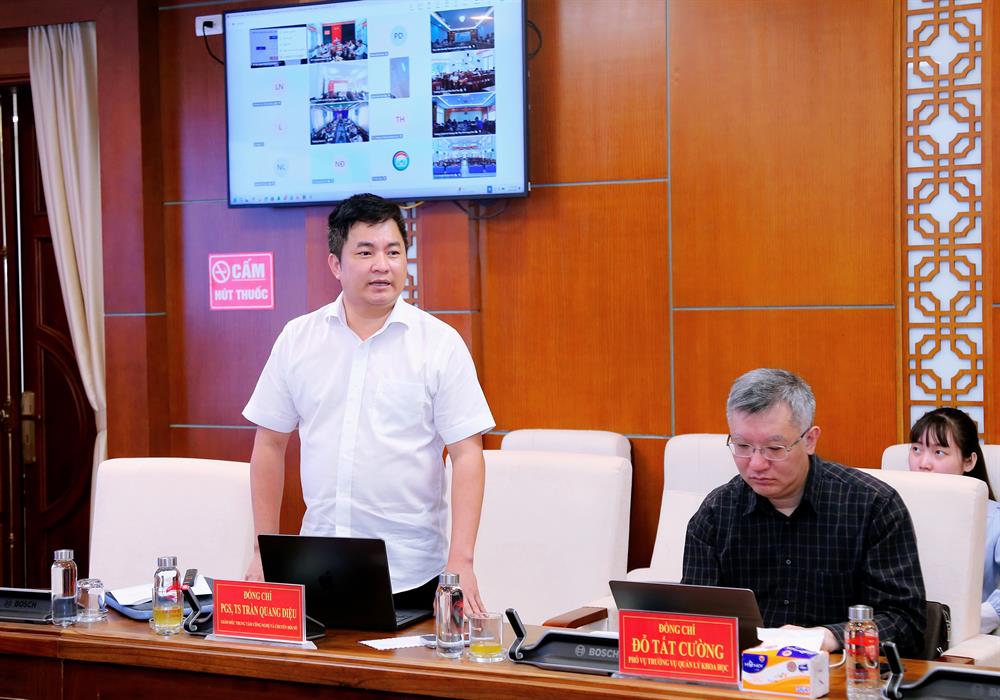 PGS,TS Trần Quang Diệu, Giám đốc Trung tâm Công nghệ và Chuyển đổi số phát biểu tham luận tại hội thảo