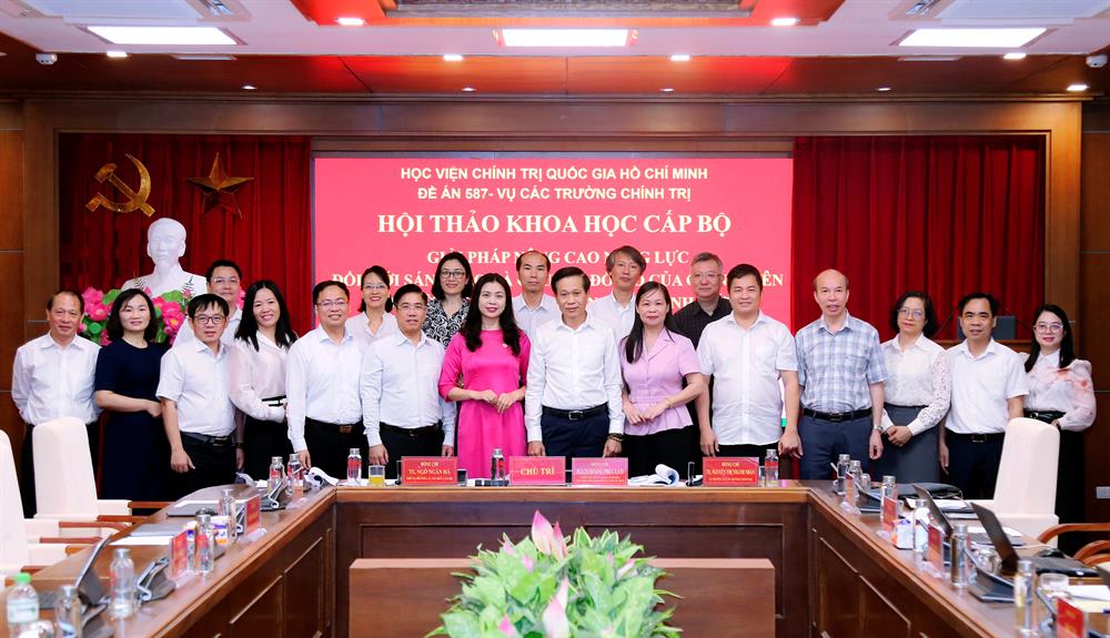 Cùng chủ trì có TS Nguyễn Thị Thanh Nhàn, Vụ trưởng Vụ Các trường Chính trị; TS Ngô Ngân Hà, Phó Vụ trưởng Vụ Tổ chức cán bộ, Chánh Văn phòng Đề án 587. Tham dự Hội thảo có đại diện lãnh đạo các đơn vị thuộc Học viện, lãnh đạo các trường chính trị tỉnh, thành phố, cùng đông đảo các nhà khoa học, chuyên gia, giảng viên và cán bộ quản lý trong hệ thống đào tạo, bồi dưỡng lý luận chính trị.