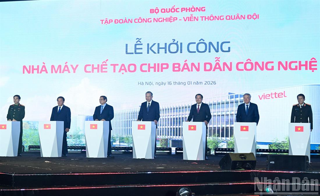 Sáng 16/1, tại Khu Công nghệ cao Hòa Lạc (Hà Nội), Tổng Bí thư Tô Lâm, Thủ tướng Phạm Minh Chính và các đồng chí lãnh đạo Đảng, Nhà nước dự Lễ khởi công xây dựng nhà máy chế tạo chip bán dẫn công nghệ cao phục vụ nhu cầu nghiên cứu, thiết kế, sản xuất chip bán dẫn của Tập đoàn Công nghiệp Viễn thông Quân đội, Bộ Quốc phòng.