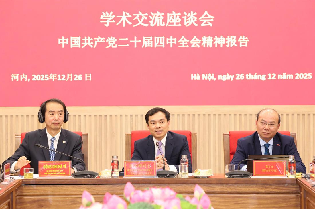 Ngày 26/12/2025, Học viện Chính trị quốc gia Hồ Chí Minh chủ trì phối hợp với Đại sứ quán Trung Quốc tại Việt Nam tổ chức chương trình thuyết trình với chủ đề “Những điểm mới của Hội nghị Trung ương 4 khóa XX Đảng Cộng sản Trung Quốc”. Đồng chí Hà Vĩ, Đại sứ Đặc mệnh toàn quyền nước Cộng hòa Nhân dân Trung Hoa tại Việt Nam báo cáo tại chương trình.