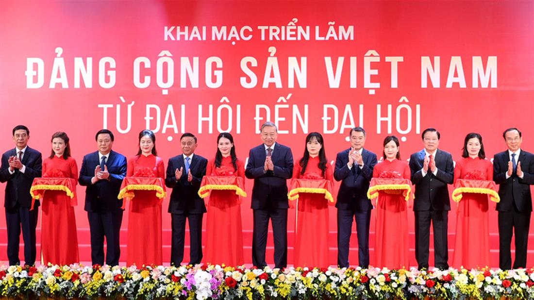 Hướng tới Đại hội đại biểu toàn quốc lần thứ XIV của Đảng, chiều 26/12, tại Hà Nội, Văn phòng Trung ương Đảng phối hợp Bộ Văn hóa, Thể thao và Du lịch tổ chức khai mạc Triển lãm “Đảng Cộng sản Việt Nam-Từ Đại hội đến Đại hội”. Tổng Bí thư Tô Lâm dự và cắt băng khai mạc.