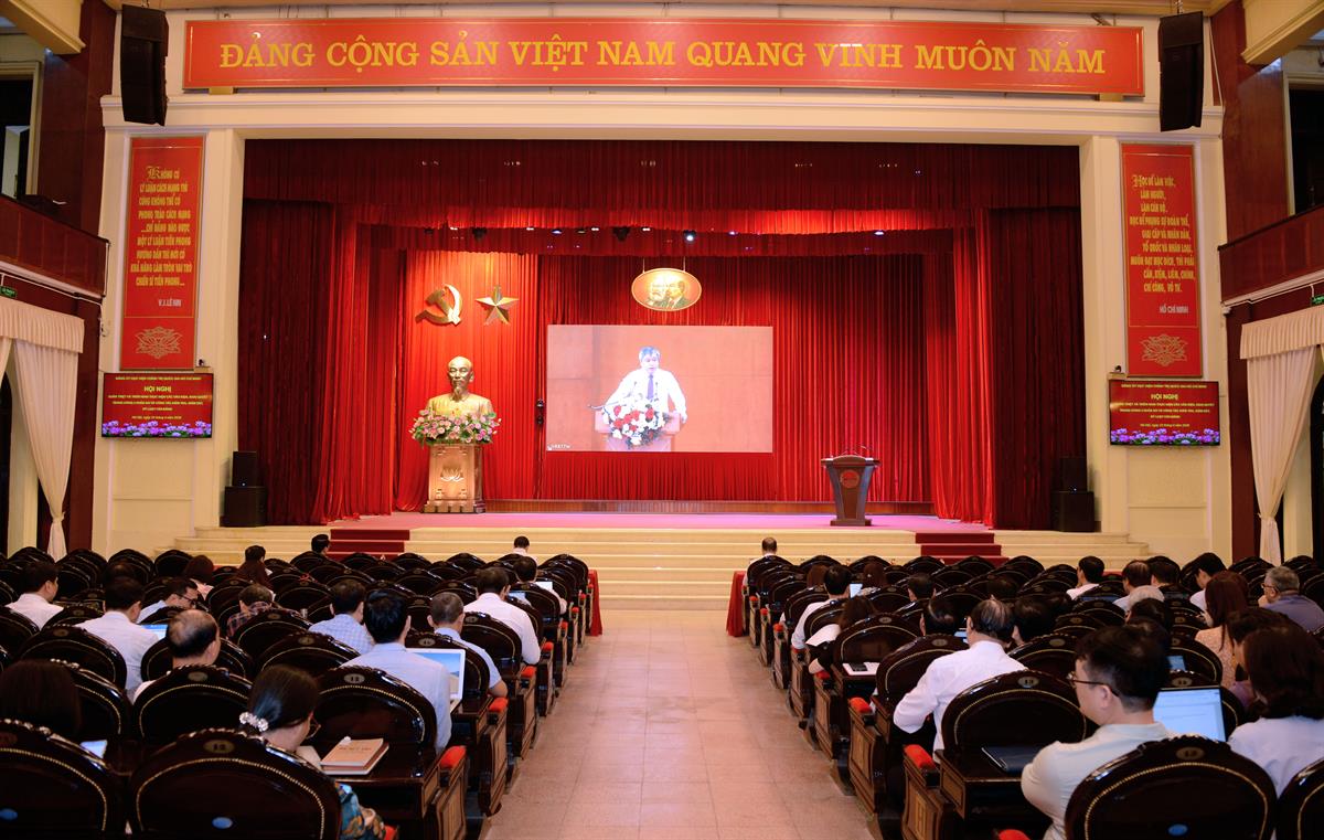 Các đại biểu tham dự hội nghị tại điểm cầu Học viện Chính trị quốc gia Hồ Chí Minh