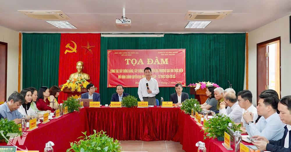 Sáng ngày 21/2/2026, tại Di tích lịch sử Quốc gia Trường Đảng Nguyễn Ái Quốc (xã Bình Thành, tỉnh Thái Nguyên), Học viện Chính trị quốc gia Hồ Chí Minh phối hợp với Đảng ủy xã Bình Thành, tỉnh Thái Nguyên tổ chức tọa đàm khoa học với chủ đề: “Công tác xây dựng Đảng, xây dựng chính quyền địa phương sau khi thực hiện mô hình chính quyền địa phương hai cấp – Từ thực tiễn cơ sở”.