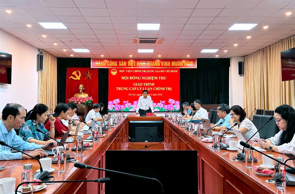 Sáng ngày 09/4/2026, Học viện Chính trị quốc gia Hồ Chí Minh đã tổ chức họp Hội đồng nghiệm thu giáo trình Trung cấp Lý luận chính trị đối với các môn học: Nhà nước và Pháp luật Việt Nam; Quản lý hành chính nhà nước; Kỹ năng lãnh đạo, quản lý và Kiến thức bổ trợ. PGS,TS Hoàng Phúc Lâm - Phó Giám đốc Học viện Chính trị quốc gia Hồ Chí Minh chủ trì cuộc họp.