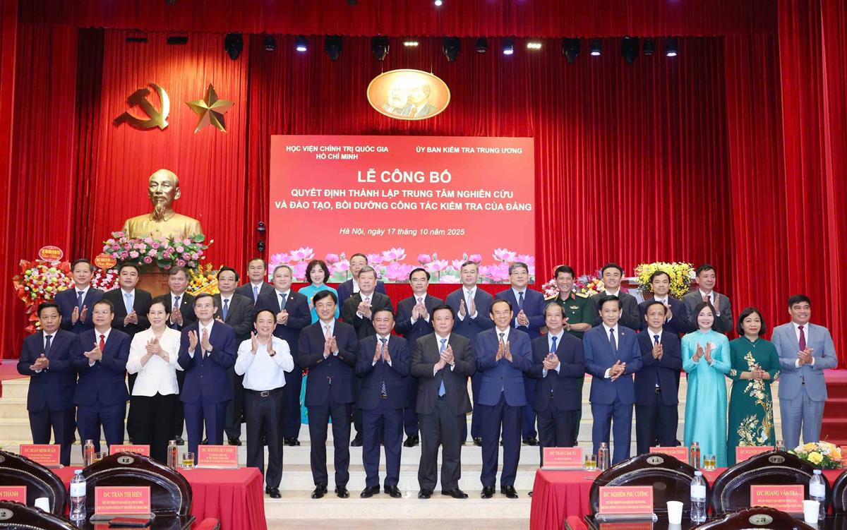 Chiều ngày 17/10/2025, tại Hà Nội, Học viện Chính trị Quốc gia Hồ Chí Minh phối hợp với Ủy ban Kiểm tra Trung ương tổ chức Lễ công bố Quyết định thành lập, ra mắt Trung tâm Nghiên cứu và Đào tạo, bồi dưỡng công tác kiểm tra của Đảng và Ký kết Quy chế hợp tác giữa hai đơn vị. Đồng chí Trần Cầm Tú, Ủy viên Bộ Chính trị, Thường trực Ban Bi thư Trung ương Đảng dự và phát biểu chỉ đạo.