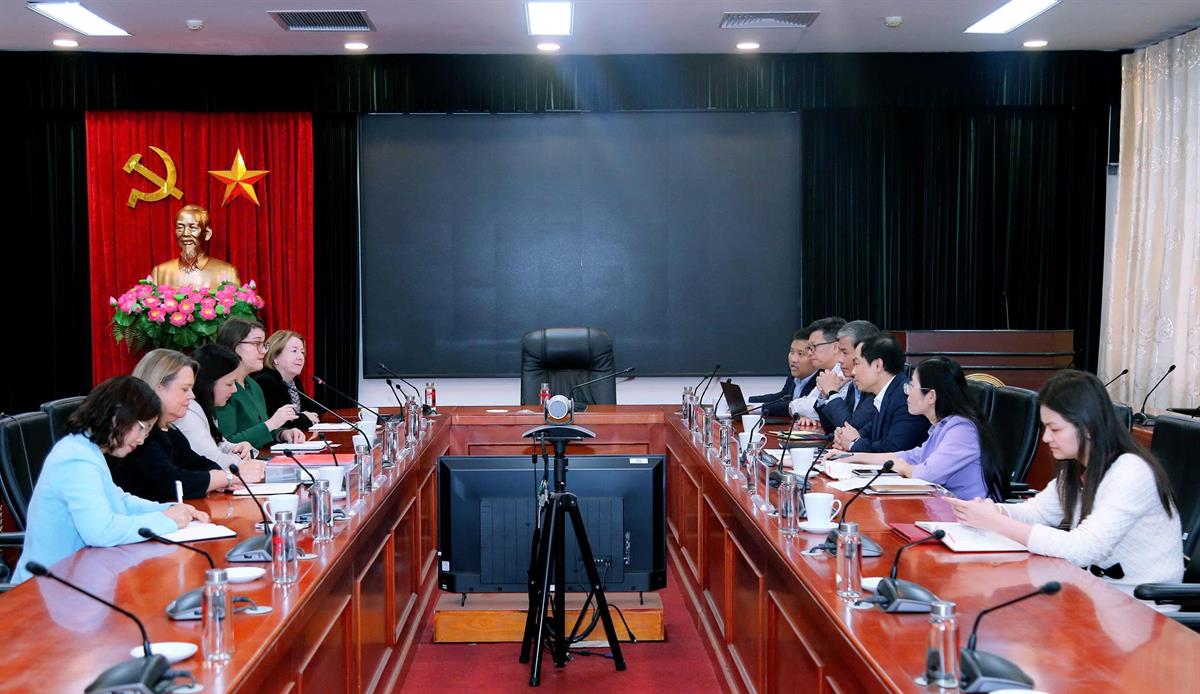Chiều ngày 3/3/2026, tại Hà Nội, Đoàn chuyên gia Trường Đào tạo cán bộ Chính phủ Australia và New Zealand (ANZSOG) do TS Anneke Schmider, Giám đốc Chương trình Các sáng kiến toàn cầu, Trường ANZSOG làm Trưởng đoàn đến thăm và làm việc tại Học viện. PGS,TS Nguyễn Mạnh Hùng, Phó Giám đốc Học viện Chính trị quốc gia Hồ Chí Minh, Phó Chủ tịch Hội đồng Lý luận Trung ương, Giám đốc Quốc gia Trung tâm Việt – Úc (VAC) dự và chủ trì buổi tiếp và làm việc.