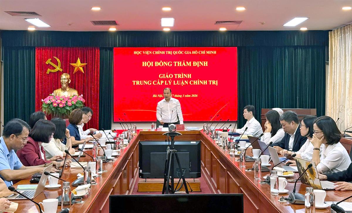 Sáng 17/3/2026, tại Hà Nội, Học viện Chính trị quốc gia Hồ Chí Minh tổ chức họp Hội đồng thẩm định các giáo trình thuộc chương trình Trung cấp Lý luận chính trị. Phiên họp do PGS,TS Lê Hải Bình, Ủy viên Trung ương Đảng, Phó Giám đốc thường trực Học viện chủ trì.
