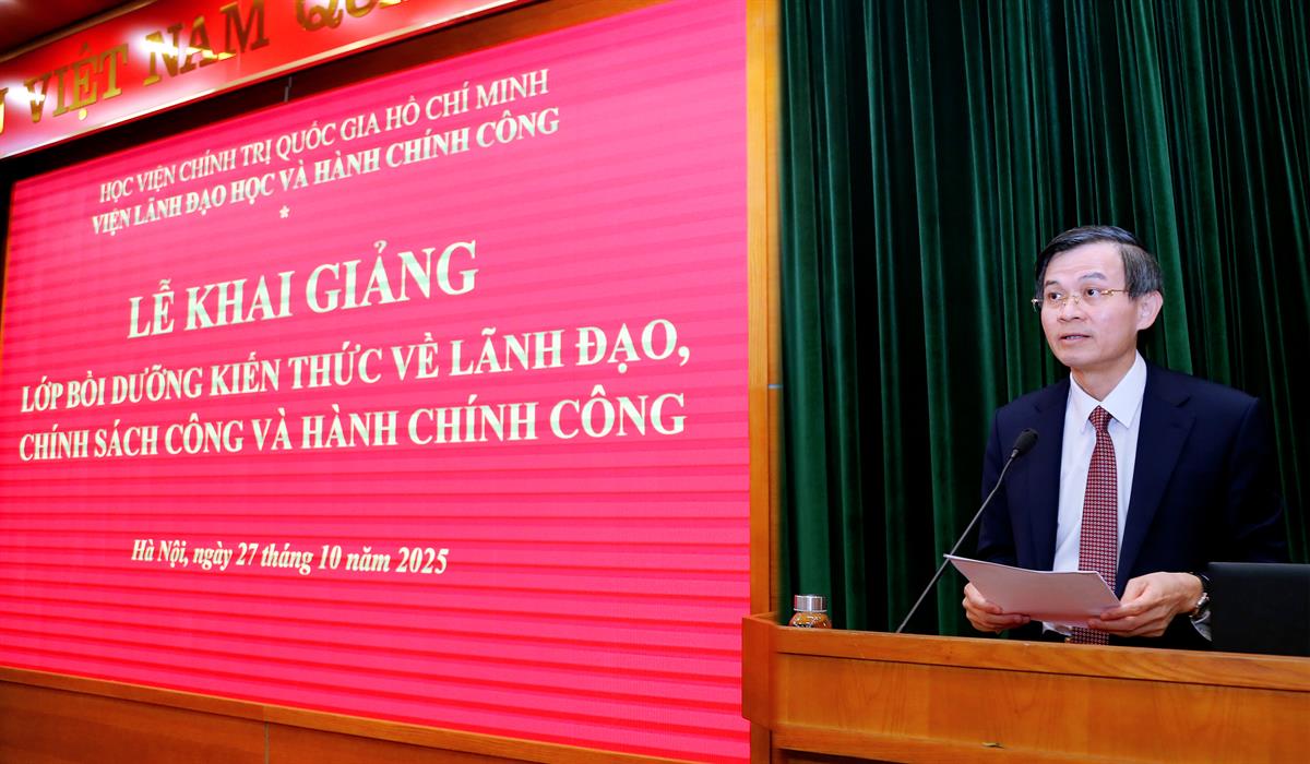 Chiều ngày 27/10/2025, Học viện Chính trị quốc gia Hồ Chí Minh tổ chức khai giảng Lớp bồi dưỡng kiến thức về lãnh đạo, chính sách công và hành chính công dành cho các giảng viên Viện Lãnh đạo học và Hành chính công; Viện Kinh tế, Xã hội và Môi trường; Viện Chính trị và Quan hệ quốc tế; giảng viên các Học viện Chính trị khu vực I, II, III, IV; Học viện Báo chí và Tuyên truyền; Học viện Hành chính và Quản trị công.