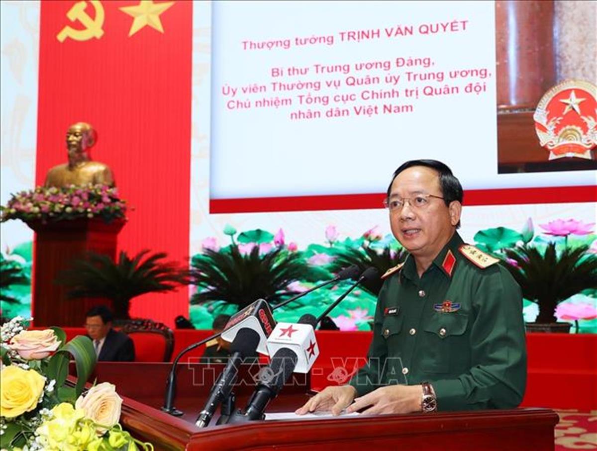 Thượng tướng Trịnh Văn Quyết, Bí thư Trung ương Đảng, Chủ nhiệm Tổng cục Chính trị QĐND Việt Nam phát biểu.