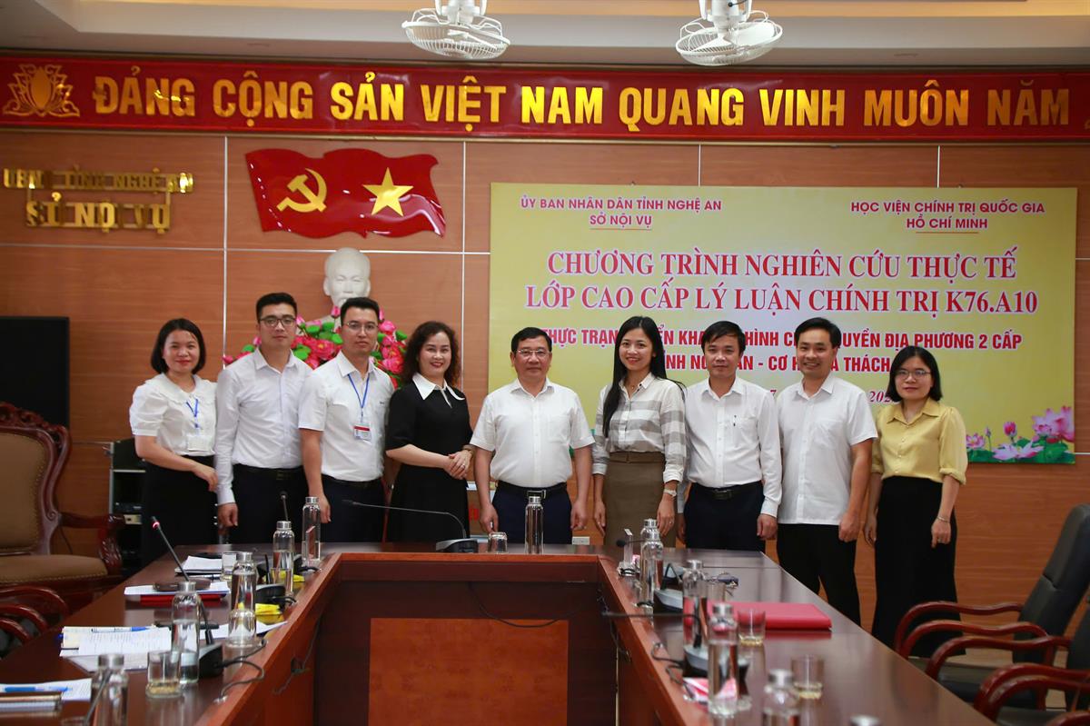 Thực hiện chương trình kế hoạch học tập, từ ngày 17/3 đến ngày 20/3/2026, Đoàn cán bộ và Học viên Lớp Cao cấp lý luận chính trị hệ tập trung K76.A10, khoá học 2025 - 2026 do PGS,TS Trần Quang Hiển, Phó Viện trưởng Viện Nhà nước và Pháp luật làm Trưởng đoàn, Th.S. Nguyễn Thị Thanh Bình, Vụ Quản lý đào tạo, bồi dưỡng, Chủ nhiệm lớp làm Phó Trưởng đoàn đã tổ chức nghiên cứu thực tế tại tỉnh Nghệ An.
