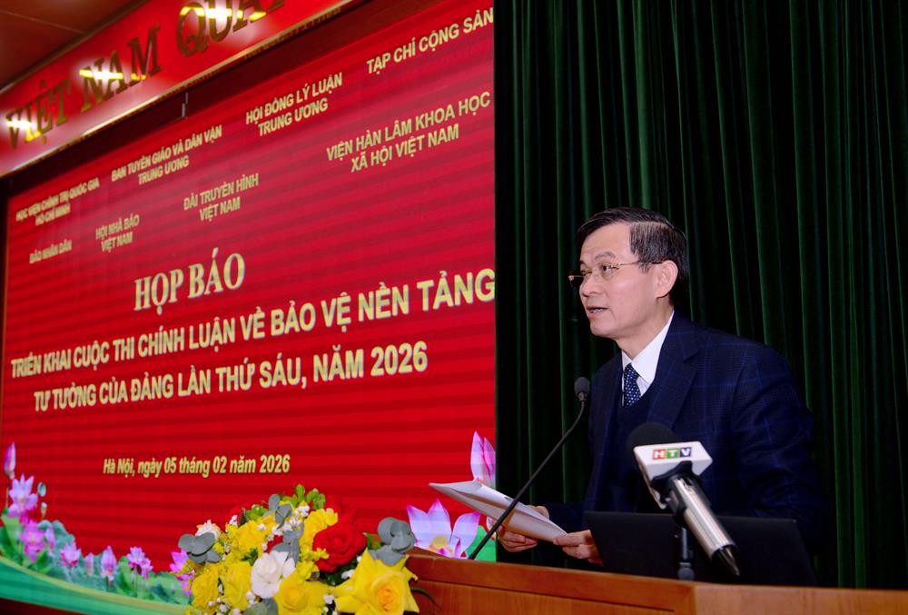 Sáng ngày 05/02/2026, tại Hà Nội, thực hiện chỉ đạo của Ban Chỉ đạo 35 Trung ương, Học viện Chính trị quốc gia Hồ Chí Minh chủ trì, phối hợp với Ban Tuyên giáo và Dân vận Trung ương, Hội đồng Lý luận Trung ương, Tạp chí Cộng sản, Báo Nhân dân, Đài Truyền hình Việt Nam, Hội Nhà báo Việt Nam và Viện Hàn lâm Khoa học xã hội Việt Nam tổ chức họp báo triển khai Cuộc thi chính luận về bảo vệ nền tảng tư tưởng của Đảng lần thứ sáu, năm 2026 (Cuộc thi). Đồng chí Đoàn Minh Huấn, Uỷ viên Bộ Chính trị, Giám đốc Học viện Chính trị quốc gia Hồ Chí Minh, Phó Trưởng Ban Chỉ đạo 35 Trung ương, Trưởng Ban Chỉ đạo Cuộc thi dự và chủ trì họp báo.