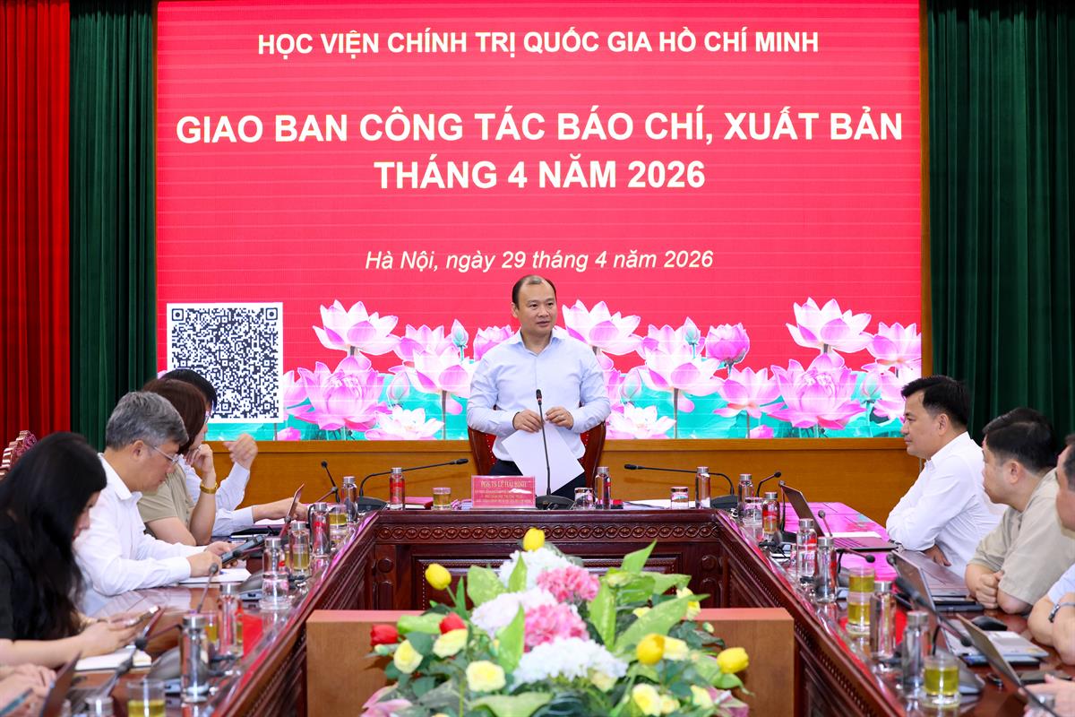 Chiều 24/4/2026, tại Hà Nội, Ban Chỉ đạo 35 Học viện Chính trị quốc gia Hồ Chí Minh phối hợp với Học viện An ninh nhân dân (Bộ Công an) tổ chức Hội thảo khoa học với chủ đề: “Đổi mới nội dung, phương thức tuyên truyền những điểm mới nổi bật của Văn kiện Đại hội toàn quốc lần thứ XIV của Đảng”. PGS,TS Lê Hải Bình, Ủy viên Trung ương Đảng, Phó Giám đốc thường trực Học viện, Phó Trưởng ban thường trực Ban Chỉ đạo 35 Học viện Chính trị quốc gia Hồ Chí Minh dự và chủ trì hội thảo.
