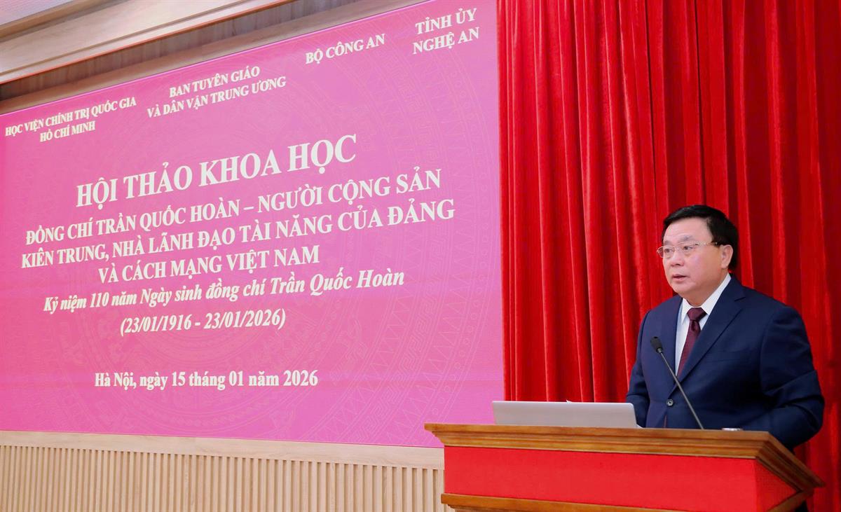 Nhân dịp kỷ niệm 110 năm Ngày sinh đồng chí Trần Quốc Hoàn (23/01/1916 – 23/01/2026), chiều ngày 15/01/2026, tại Hà Nội, Học viện Chính trị quốc gia Hồ Chí Minh phối hợp với Ban Tuyên giáo và Dân vận Trung ương, Bộ Công an, Tỉnh ủy Nghệ An tổ chức Hội thảo khoa học “Đồng chí Trần Quốc Hoàn - Người cộng sản kiên trung, nhà lãnh đạo tài năng của Đảng và cách mạng Việt Nam”.