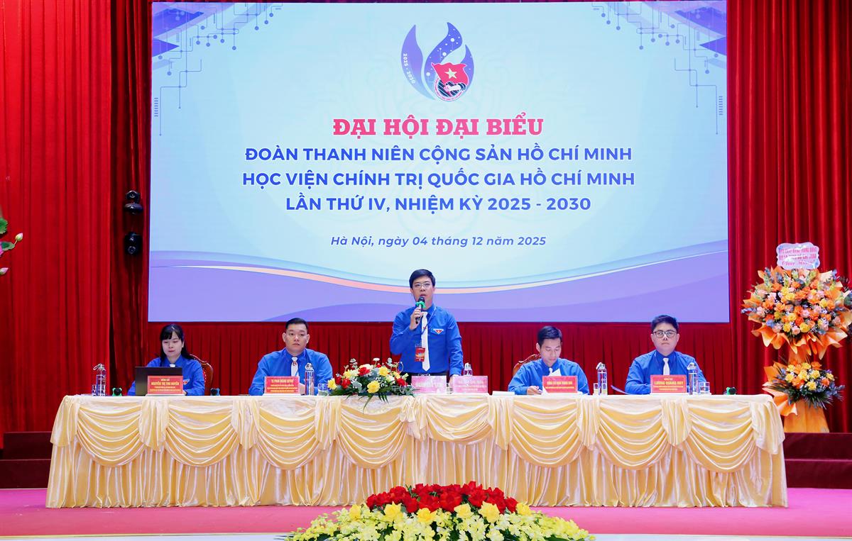 Trong không khí tuổi trẻ cả nước thi đua lập thành tích chào mừng đại hội đoàn các cấp hướng tới Đại hội Đoàn toàn quốc lần thứ XIII, sáng ngày 04/12/2025, Đại hội đại biểu Đoàn TNCS Hồ Chí Minh Học viện Chính trị quốc gia Hồ Chí Minh (Đoàn Thanh niên Học viện) lần thứ IV, nhiệm kỳ 2025-2030 đã được khai mạc trọng thể tại Hà Nội với chủ đề “Tăng cường giáo dục lý tưởng, đạo đức cách mạng, tham gia chuyển đổi số toàn diện; phát huy bản lĩnh, trí tuệ, sức sáng tạo của tuổi trẻ Học viện Chính trị quốc gia Hồ Chí Minh trong kỷ nguyên mới của đất nước”.