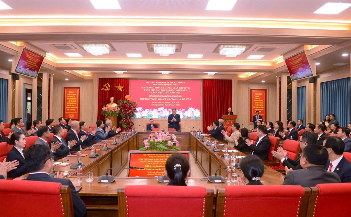 Chiều ngày 02/2/2026, tại Hà Nội, Học viện Chính trị quốc gia Hồ Chí Minh tổ chức Lễ bế giảng Lớp Cao cấp lý luận chính trị dành cho cán bộ của Đảng Nhân dân Cách mạng Lào năm 2025. PGS,TS Nguyễn Duy Bắc, Phó Giám đốc Học viện dự và chủ trì buổi lễ.