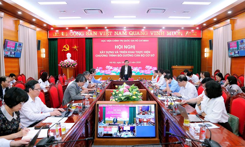 Sáng ngày 29/3/2026, tại Hà Nội, Học viện Chính trị quốc gia Hồ Chí Minh tổ chức Hội nghị thảo luận xây dựng và triển khai thực hiện chương trình bồi dưỡng cán bộ cơ sở. PGS,TS Đoàn Minh Huấn, Uỷ viên Bộ Chính trị, Giám đốc Học viện dự và chủ trì hội nghị.
