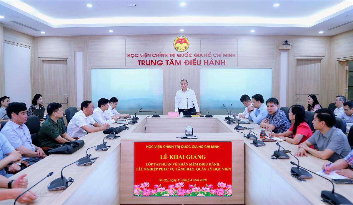 Sáng ngày 11/04/2026, tại Hà Nội, Học viện Chính trị quốc gia Hồ Chí Minh tổ chức khai giảng Lớp tập huấn về phần mềm Điều hành, tác nghiệp phục vụ lãnh đạo, quản lý của Học viện. PGS,TS Lê Hải Bình, Ủy viên Ban Chấp hành Trung ương Đảng, Phó Giám đốc thường trực Học viện dự và chủ trì buổi lễ.