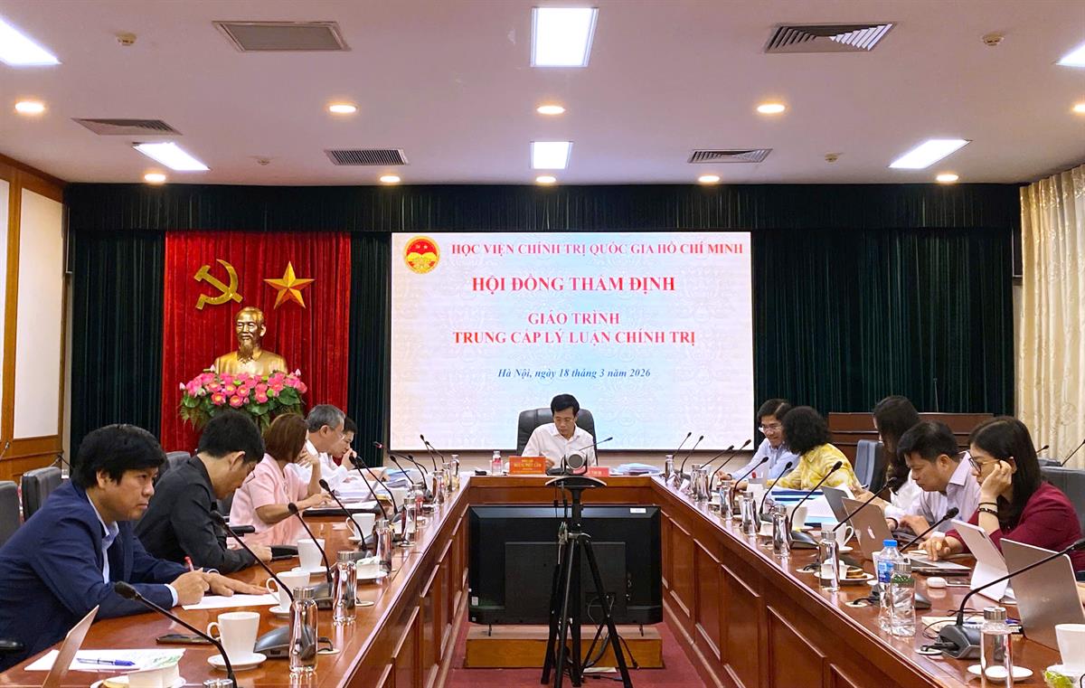 Sáng 17/3/2026, tại Hà Nội, Học viện Chính trị quốc gia Hồ Chí Minh tổ chức họp Hội đồng thẩm định các giáo trình thuộc chương trình Trung cấp Lý luận chính trị. Phiên họp do PGS,TS Lê Hải Bình, Ủy viên Trung ương Đảng, Phó Giám đốc thường trực Học viện chủ trì.