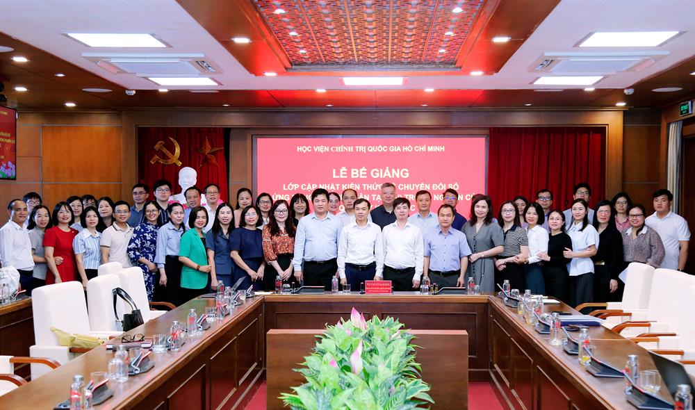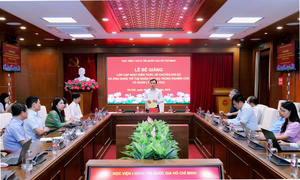 Sáng 04/10, tại Hà Nội, Học viện Chính trị quốc gia Hồ Chí Minh tổ chức bế giảng Lớp “Cập nhật kiến thức về Chuyển đổi số và ứng dụng trí tuệ nhân tạo (AI) trong nghiên cứu và quản lý khoa học”. PGS,TS Nguyễn Mạnh Hùng, Phó Giám đốc Học viện, Phó Chủ tịch Hội đồng Lý luận Trung ương dự và phát biểu bế giảng.