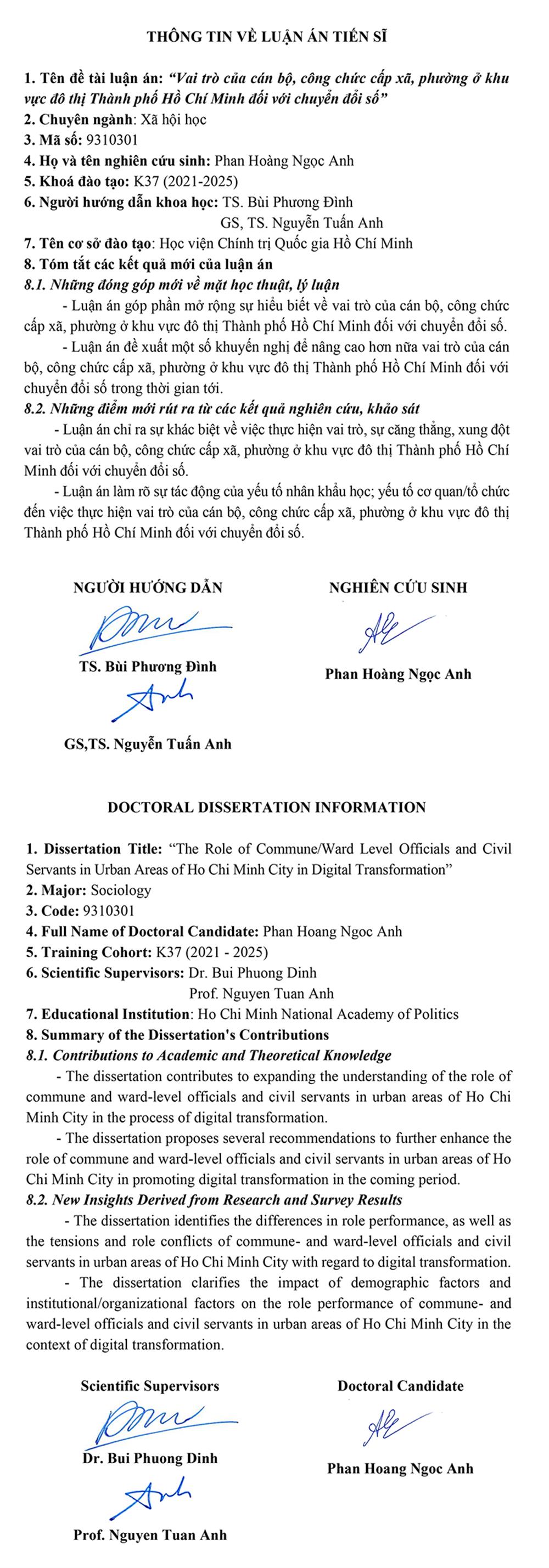 Nghiên cứu sinh Phan Hoàng Ngọc Anh tóm tắt những kết luận mới của luận án