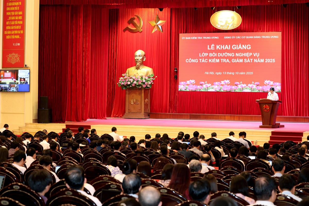 Sáng 13/10/2025, tại Học viện Chính trị quốc gia Hồ Chí Minh, Đảng ủy các cơ quan Đảng Trung ương phối hợp với Ủy ban Kiểm tra Trung ương tổ chức khai giảng Lớp bồi dưỡng nghiệp vụ về công tác kiểm tra, giám sát năm 2025, theo hình thức trực tiếp kết hợp trực tuyến, dành cho các đồng chí là cấp ủy viên, ủy viên Ủy ban Kiểm tra và cán bộ, công chức làm công tác kiểm tra, giám sát các cấp trong Đảng bộ các cơ quan Đảng Trung ương.