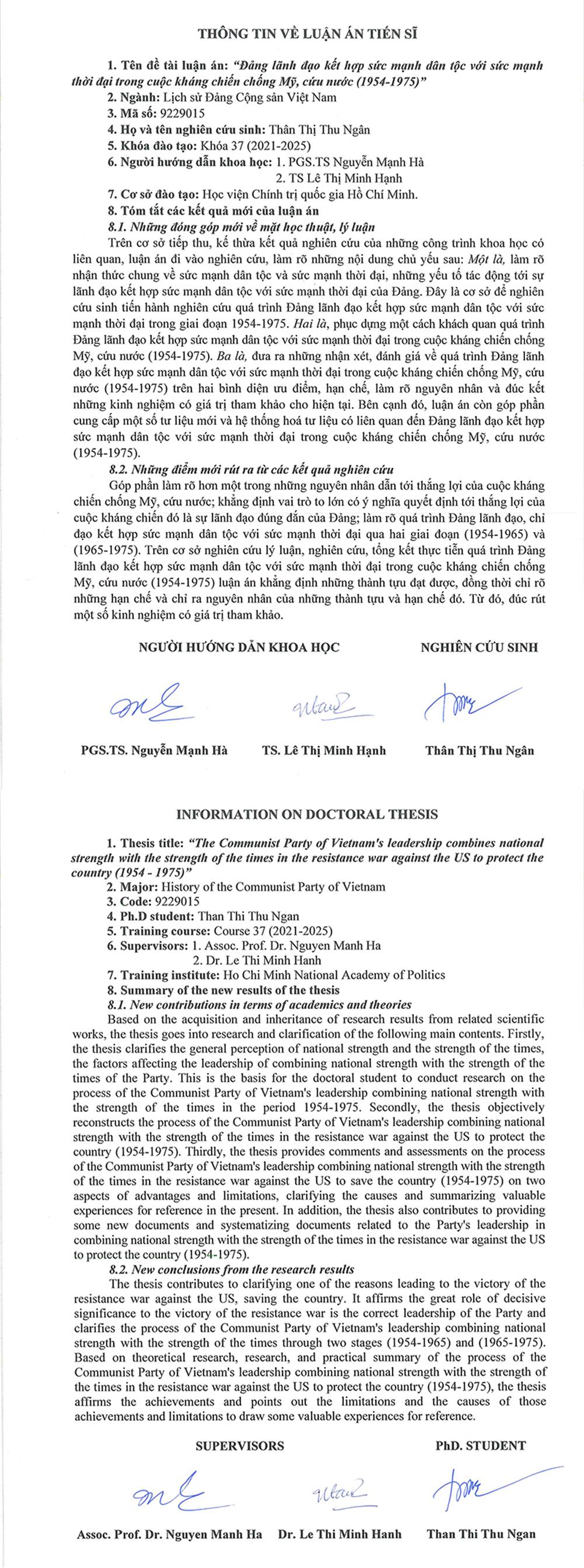 Luận án và tóm tắt luận án của Nghiên cứu sinh Tạ Văn Sang sau bảo vệ cấp Học viện