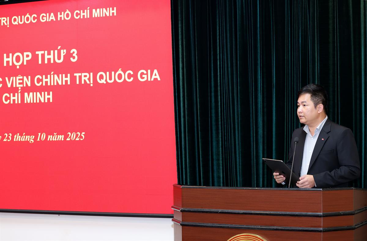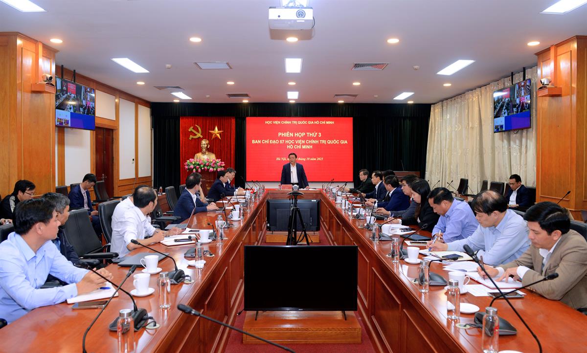 Chiều ngày 23/10/2025, Ban Chỉ đạo 57 Học viện Chính trị quốc gia Hồ Chí Minh tổ chức phiên họp định kỳ lần thứ 3. GS,TS Nguyễn Xuân Thắng, Ủy viên Bộ Chính trị, Giám đốc Học viện, Chủ tịch Hội đồng Lý luận Trung ương, Trường Ban Chỉ đạo 57 Học viện dự và chủ trì Hội nghị.