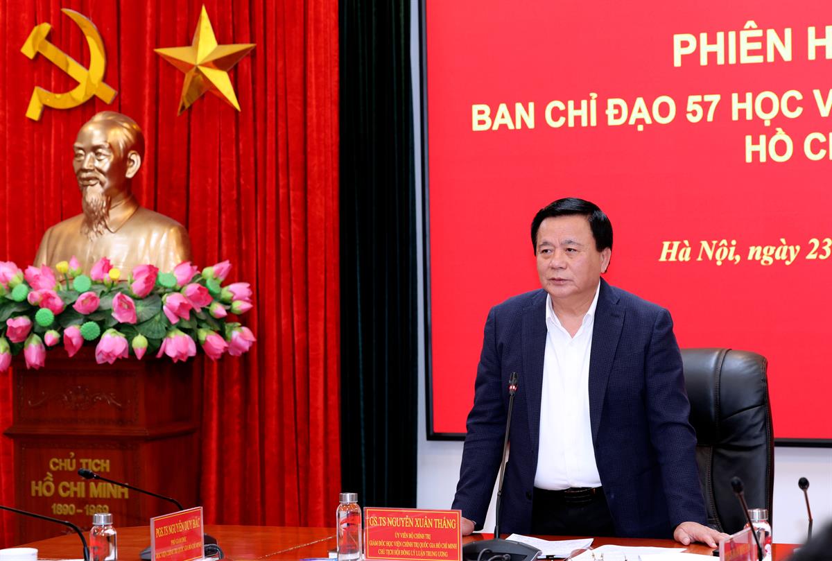GS,TS Nguyễn Xuân Thắng, Ủy viên Bộ Chính trị, Giám đốc Học viện, Chủ tịch Hội đồng Lý luận Trung ương, Trưởng Ban Chỉ đạo 57 Học viện dự và chủ trì Hội nghị.