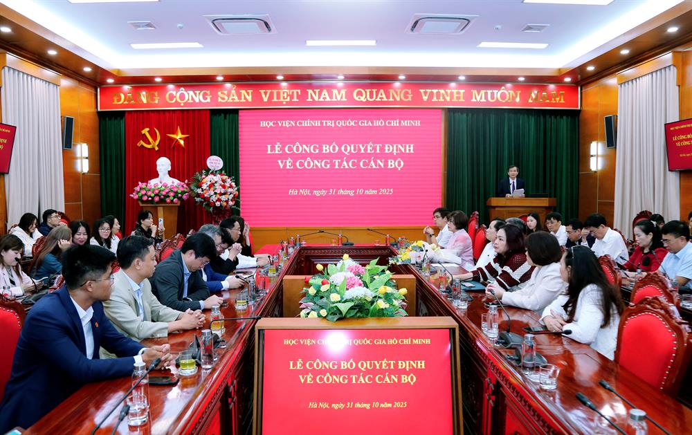 Chiều ngày 31/10/2025, Học viện Chính trị quốc gia Hồ Chí Minh tổ chức công bố Quyết định bổ nhiệm chức danh Viện trưởng Viện Thông tin khoa học. PGS,TS Đoàn Minh Huấn, Ủy viên Trung ương Đảng, Phó Giám đốc thường trực Học viện Chính trị quốc gia Hồ Chí Minh dự và chủ trì buổi Lễ.