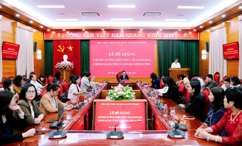 Lớp bồi dưỡng được tổ chức từ ngày 27/10 đến ngày 31/10/2025 dành cho đội ngũ cán bộ, giảng viên của hệ thống Học viện, nhằm cập nhật tri thức mới về lãnh đạo và quản trị công trong bối cảnh đẩy mạnh chuyển đổi số, hội nhập quốc tế và phát triển bền vững; nâng cao năng lực tư duy chiến lược, kỹ năng lãnh đạo, hoạch định và phân tích chính sách; tăng cường gắn kết giữa lý luận với thực tiễn quản trị nhà nước; đồng thời tạo diễn đàn học thuật để giảng viên trao đổi, chia sẻ kinh nghiệm. Sau gần một tuần học tập nghiêm túc, Lớp bồi dưỡng đã hoàn thành toàn bộ chương trình với nhiều nội dung chuyên sâu, toàn diện, gắn kết chặt chẽ giữa lý luận và thực tiễn, đáp ứng mục tiêu đề ra và đạt được nhiều kết quả tích cực.