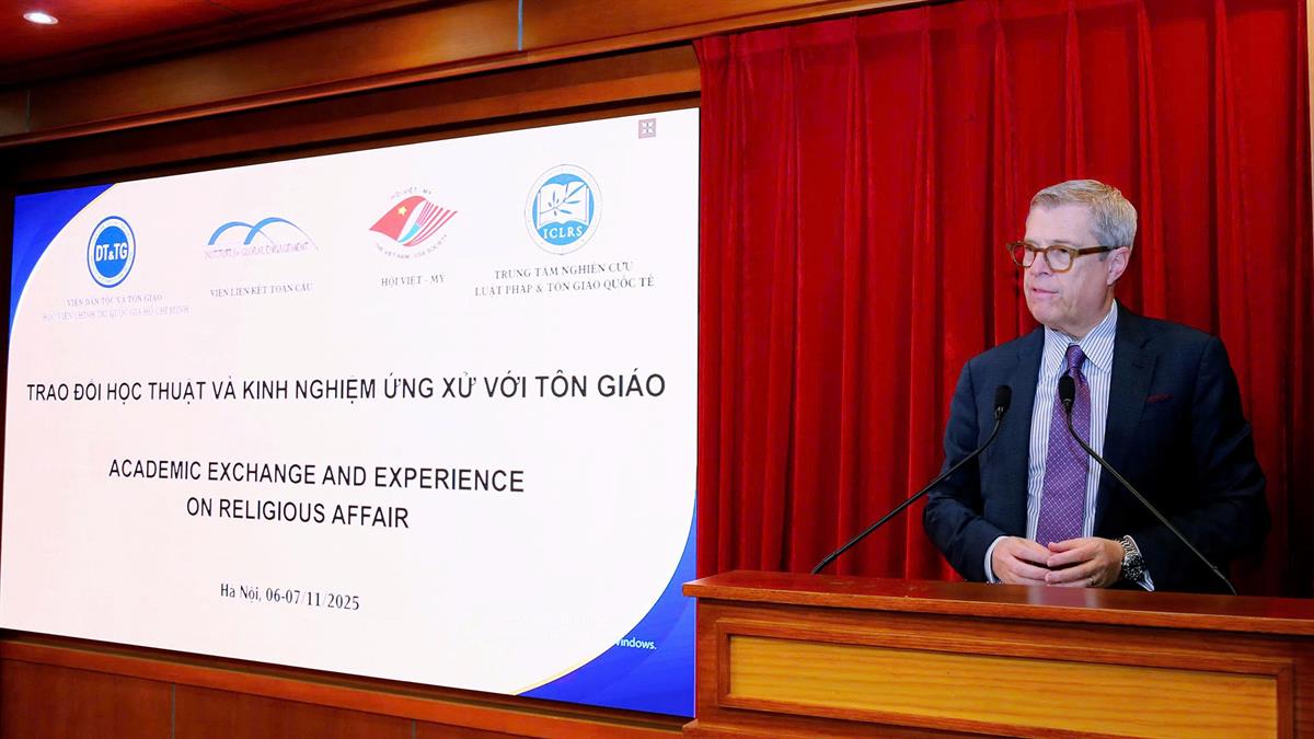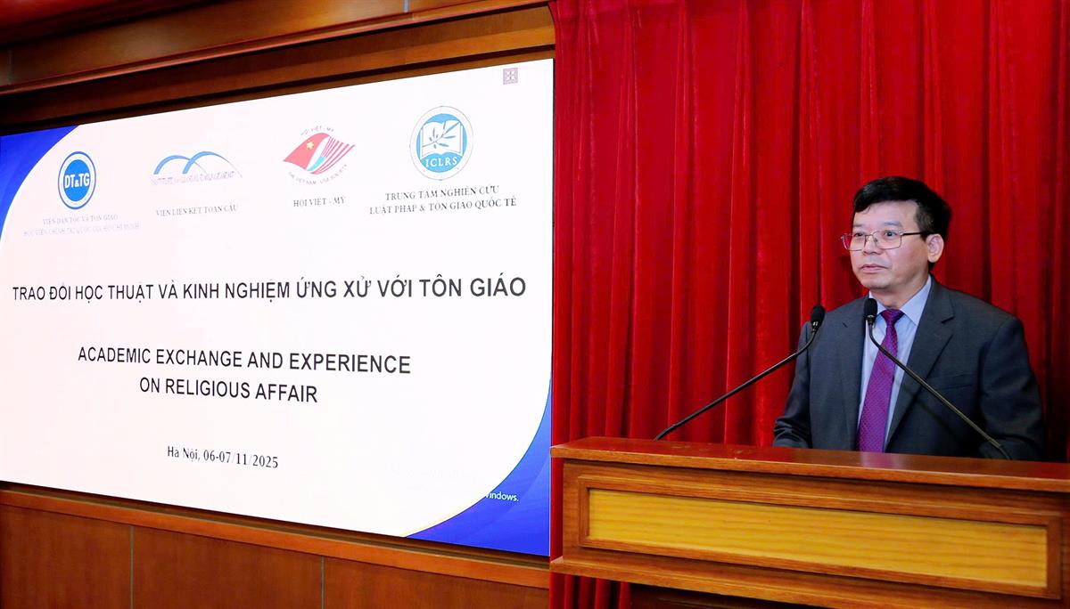 Chiều ngày 6/11/2025, tại Hà Nội, Viện Dân tộc và Tôn giáo thuộc Học viện Chính trị quốc gia Hồ Chí Minh phối hợp với Hội Việt – Mỹ, Viện Liên kết Toàn cầu (IGE) và Đại học Brigham Young (Hoa Kỳ) tổ chức chương trình “Trao đổi học thuật và kinh nghiệm ứng xử với tôn giáo”. PGS,TS Nguyễn Mạnh Hùng, Phó Giám đốc Học viện Chính trị quốc gia Hồ Chí Minh, Phó Chủ tịch Hội đồng Lý luận Trung ương dự và phát biểu khai mạc Chương trình.