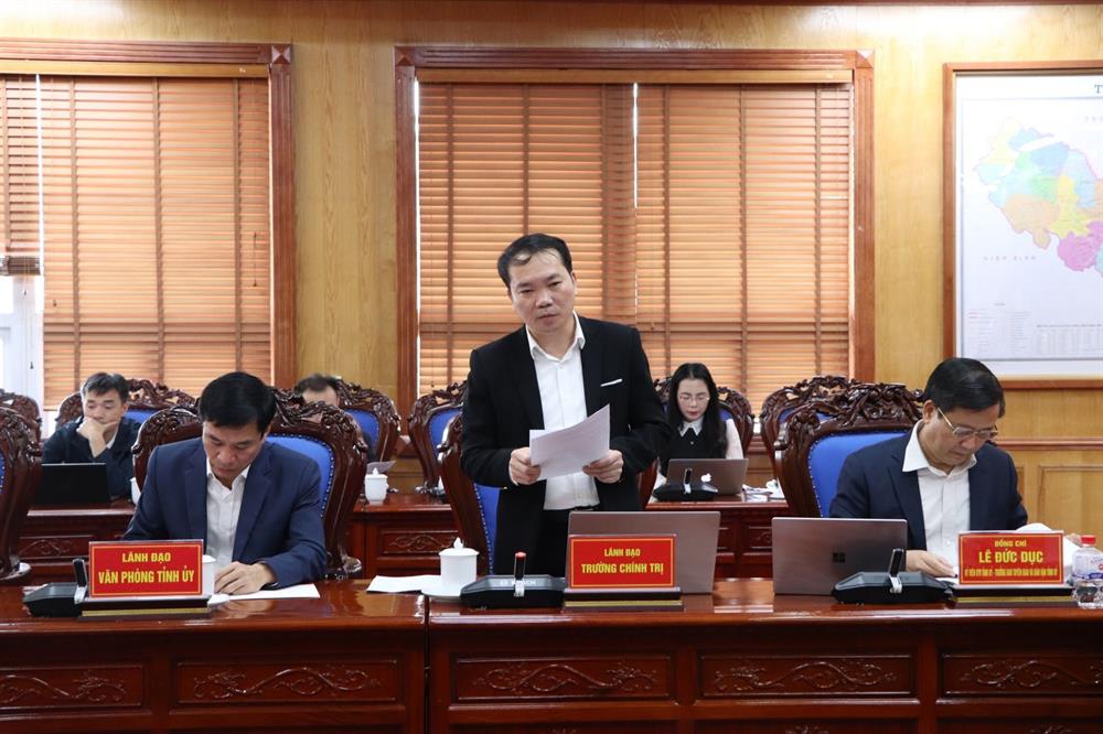 Lãnh đạo Trường Chính trị tỉnh Lai Châu báo cáo tại buổi làm việc