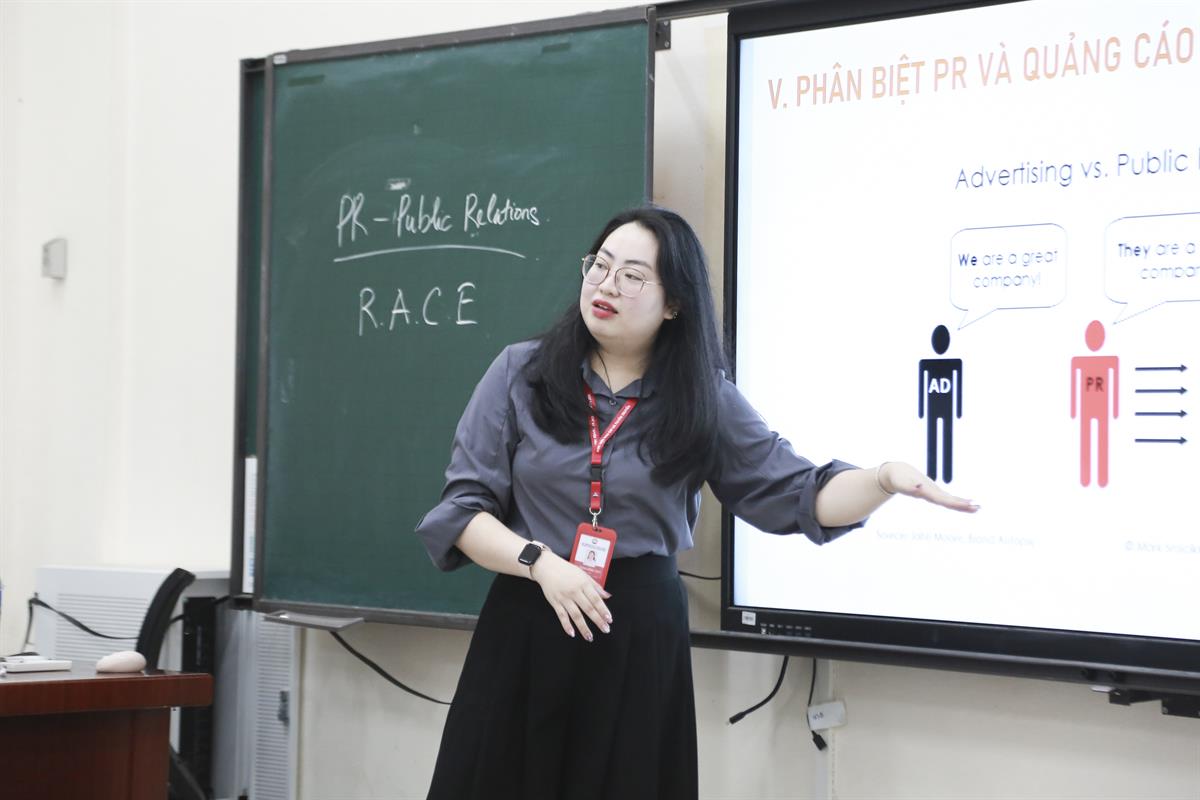ThS Trịnh Hồng Thủy,Giảng viên Khoa Quan hệ công chúng và Quảng cáo, Học viện Báo chí và Tuyên truyền thao giảng tại Chương trình
