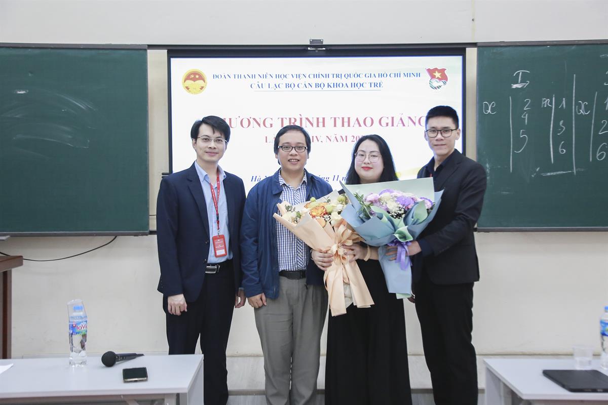 Cùng dự chương trình có đồng chí Lê Quốc, Phó Chủ nhiệm Thường trực Câu lạc bộ Cán bộ Khoa học trẻ Đoàn Thanh niên Học viện Chính trị quốc gia Hồ Chí Minh; các thầy, cô giảng viên Khoa Ngoại ngữ, Học viện Báo chí và Tuyên truyền; đại diện Ban Thường vụ Đoàn Học viện, Ban Chủ nhiệm Câu lạc bộ Cán bộ Khoa học trẻ Đoàn Thanh niên Học viện Chính trị quốc gia Hồ Chí Minh; và đông đảo đoàn viên, giảng viên trẻ đến từ các đơn vị: Học viện Chính trị khu vực I, Học viện Hành chính và Quản trị công, Học viện Báo chí và Tuyên truyền.