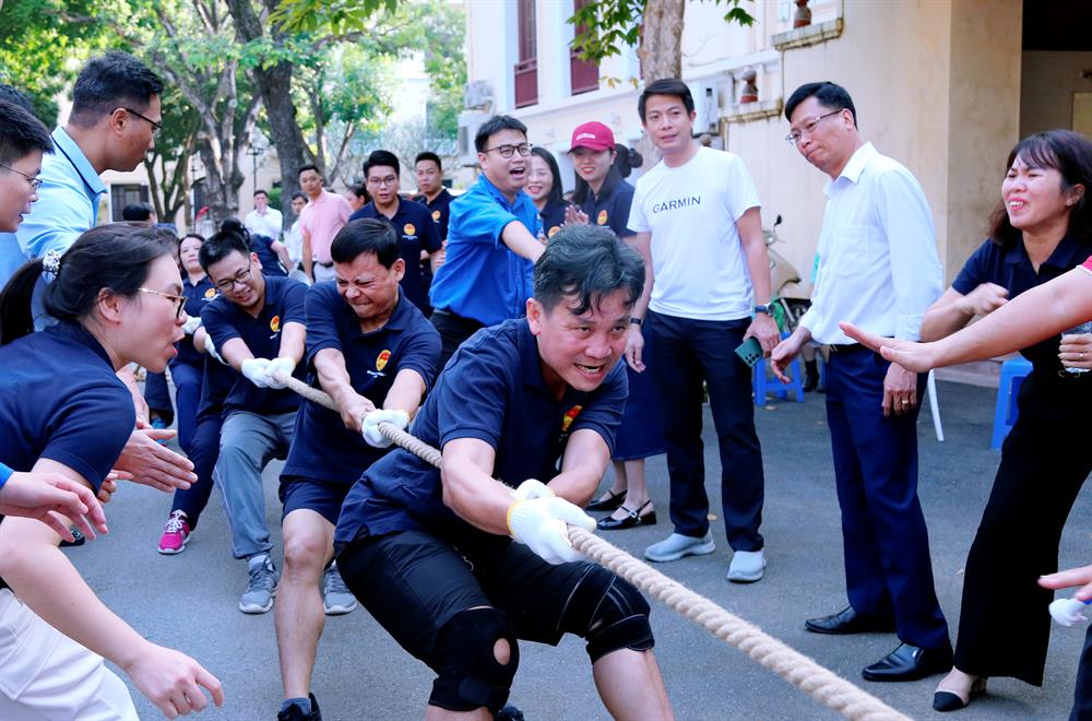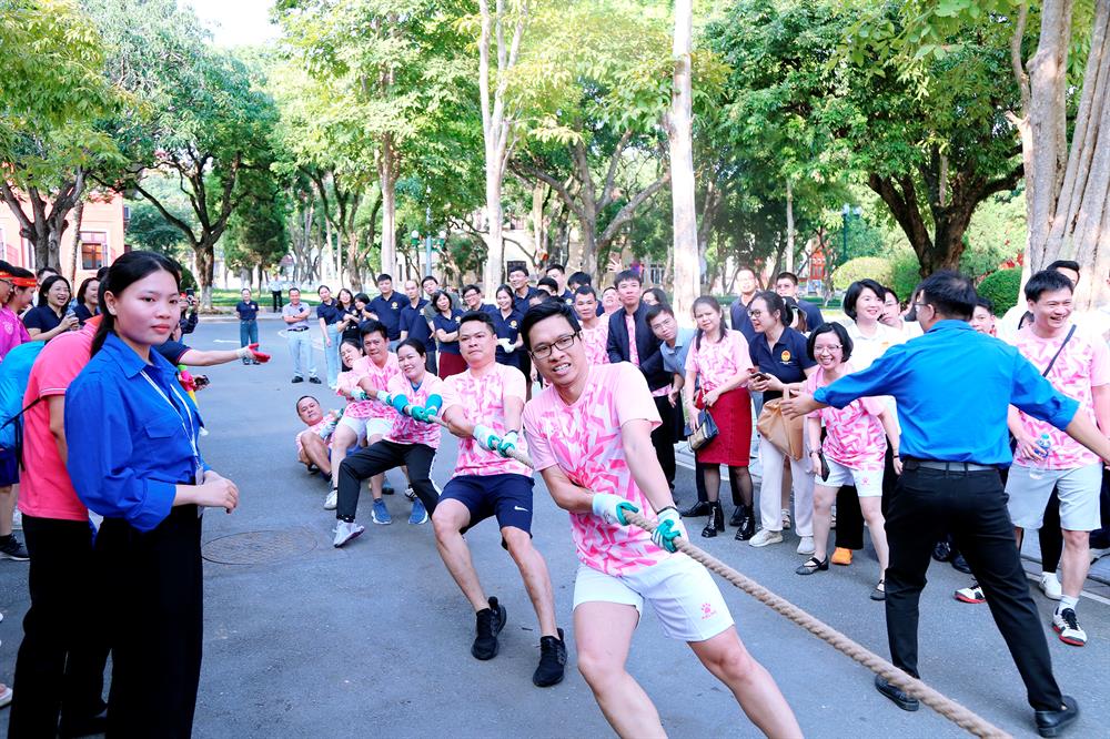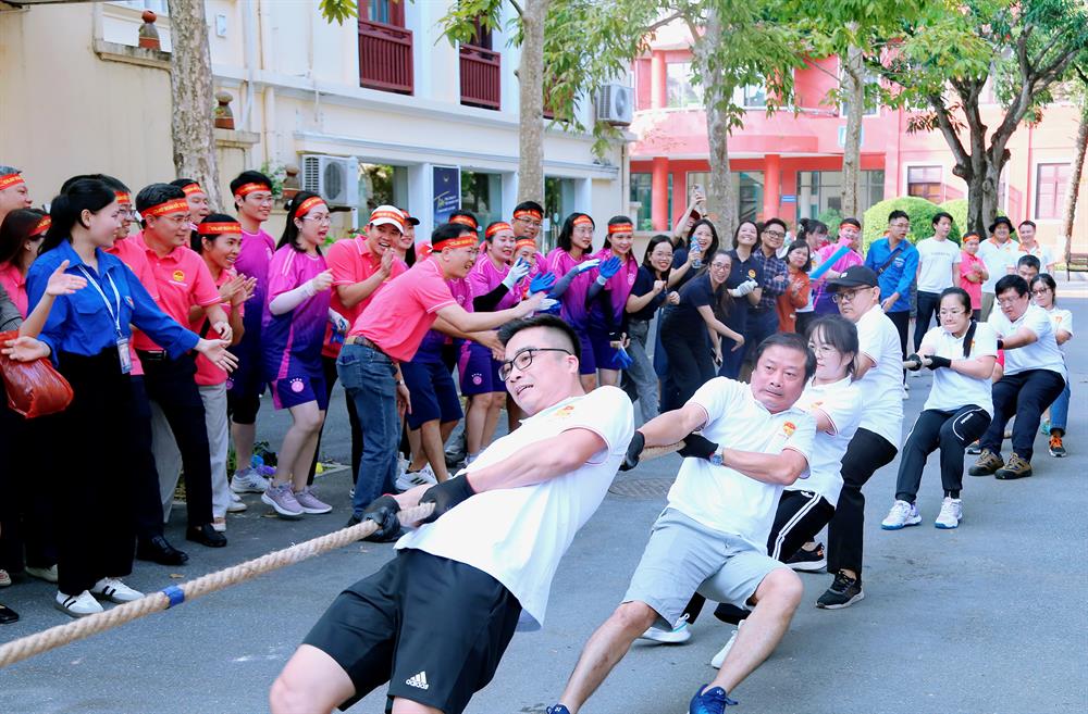 Học viên các lớp tham gia Giải thể thao ở bộ môn kéo co