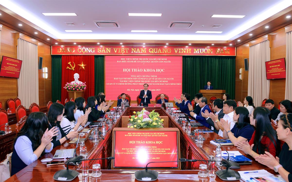 Hội thảo khoa học “Tổng kết Chương trình đào tạo thí điểm Tiến sĩ Pháp luật về quyền con người tại Học viện Chính trị quốc gia Hồ Chí Minh - Luận cứ và định hướng phát triển thành ngành đào tạo chính thức” thể hiện quyết tâm của Học viện Chính trị quốc gia Hồ Chí Minh trong việc không ngừng nâng cao chất lượng đào tạo sau đại học, đặc biệt đối với lĩnh vực có ý nghĩa chiến lược đối với sự phát triển của đất nước. Những phân tích, trao đổi và kiến nghị tại hội thảo là cơ sở khoa học để Học viện tiếp tục hoàn thiện chương trình, đáp ứng yêu cầu chuẩn hoá, hiện đại hoá và hội nhập quốc tế. Kết quả hội thảo góp phần củng cố, phát triển đội ngũ cán bộ nghiên cứu, giảng dạy và cán bộ thực tiễn có trình độ cao, năng lực vượt trội đồng hành cùng Đảng và Nhà nước trong sự nghiệp bảo đảm và thúc đẩy quyền con người ở Việt Nam trong thời kỳ mới./.