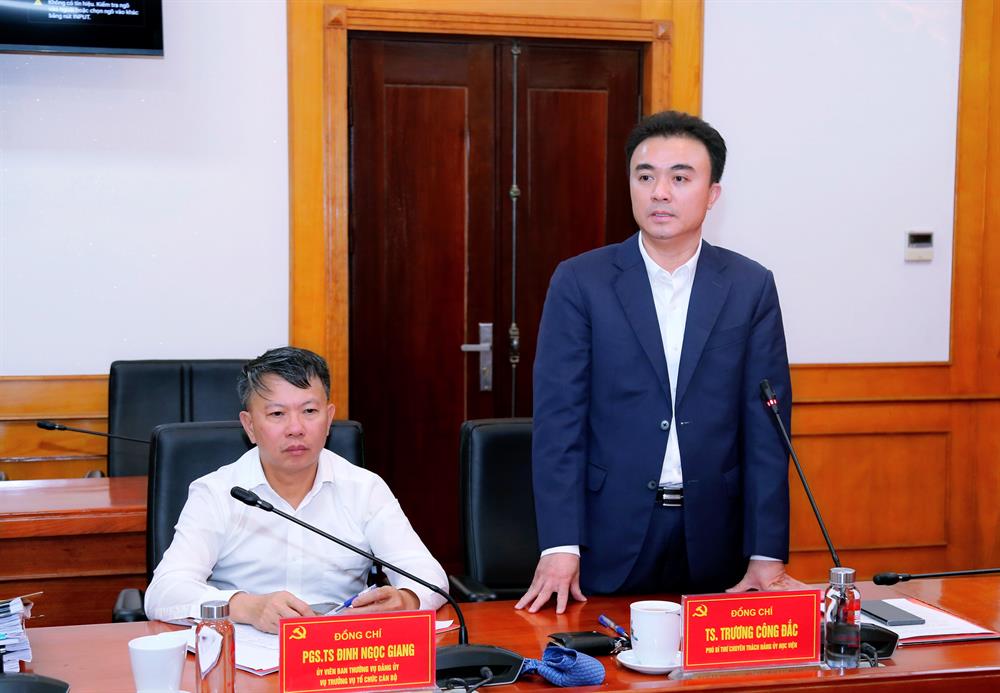 TS Trương Công Đắc, Phó Bí thư chuyên trách Đảng uỷ Học viện phát biểu tại buổi làm việc