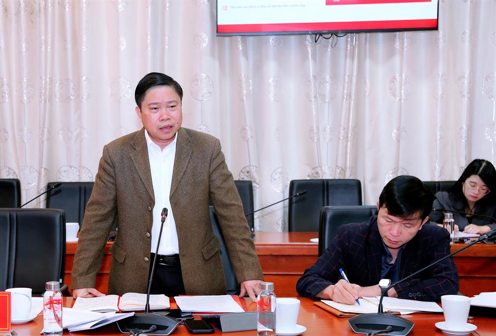 PGS,TS Nguyễn Văn Hậu, Chánh Văn phòng Đảng uỷ, Trưởng ban Công tác Đảng – Đoàn thể báo cáo tại buổi làm việc