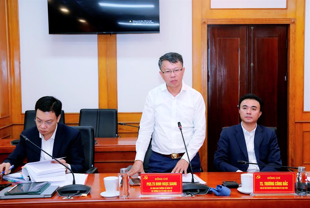 PGS,TS Đinh Ngọc Giang, Uỷ viên Ban Thường vụ Đảng uỷ Học viện, Trưởng Ban Tổ chức Đảng uỷ Học viện, Vụ trưởng Vụ Tổ chức cán bộ phát biểu tại buổi làm việc