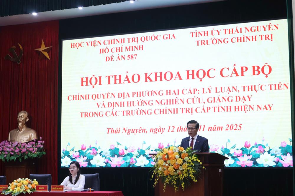 Chiều ngày 12/11/2025, tại Thái Nguyên, Ban Chủ nhiệm Đề án 587, Học viện Chính trị quốc gia Hồ Chí Minh phối hợp với Trường Chính trị tỉnh Thái Nguyên tổ chức hội thảo khoa học cấp Bộ với chủ đề: “Chính quyền địa phương hai cấp: Lý luận, thực tiễn và định hướng nghiên cứu, giảng dạy trong các trường chính trị cấp tỉnh hiện nay”. PGS, TS Hoàng Phúc Lâm, Phó Bí thư Đảng ủy, Phó Giám đốc Học viện Chính trị quốc gia Hồ Chí Minh, Chủ nhiệm Đề án 587 chủ trì Hội thảo.