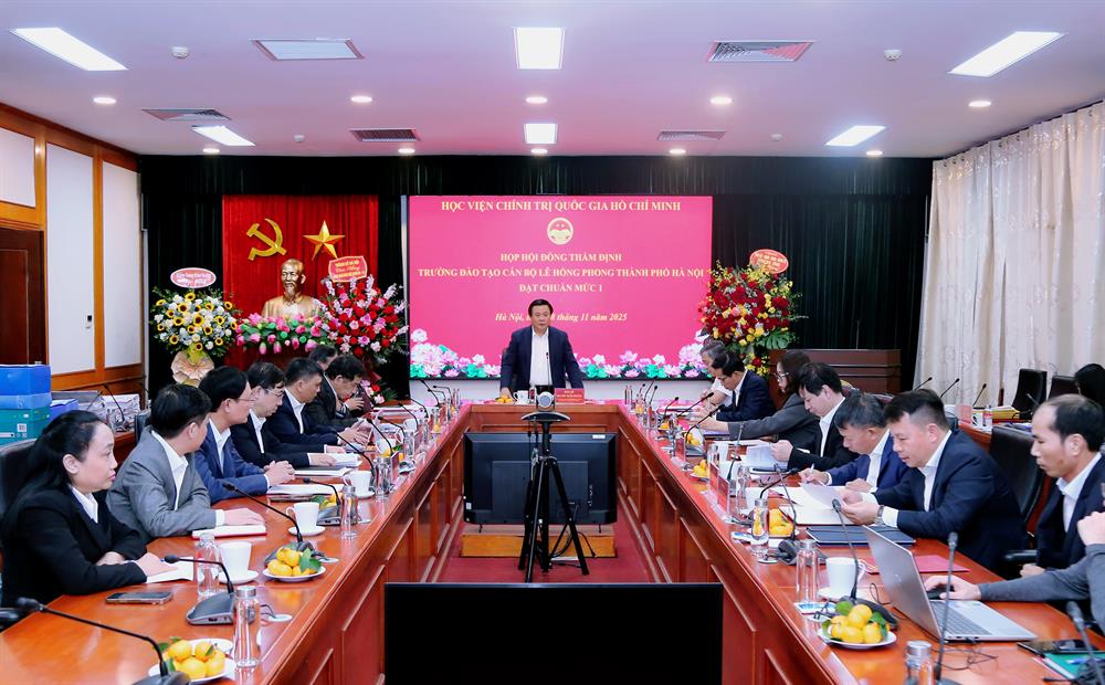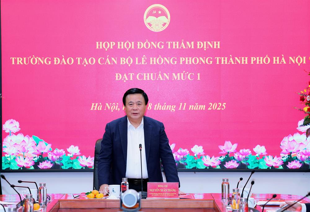 Chiều ngày 18/11/2025, tại Hà Nội, Học viện Chính trị quốc gia Hồ Chí Minh tổ chức họp Hội đồng thẩm định Trường Đào tạo cán bộ Lê Hồng Phong thành phố Hà Nội đạt chuẩn mức 1. GS,TS Nguyễn Xuân Thắng, Uỷ viên Bộ Chính trị, Giám đốc Học viện Chính trị quốc gia Hồ Chí Minh, Chủ tịch Hội đồng Lý luận Trung ương, Chủ tịch Hội đồng thẩm định dự và chủ trì hội nghị.