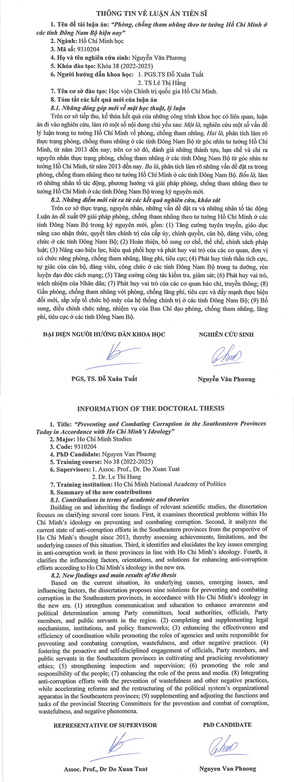 Luận án và tóm tắt luận án của Nghiên cứu sinh Dương Thị Hậu sau bảo vệ cấp Học viện