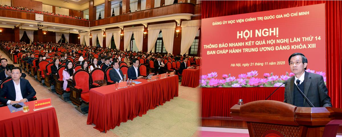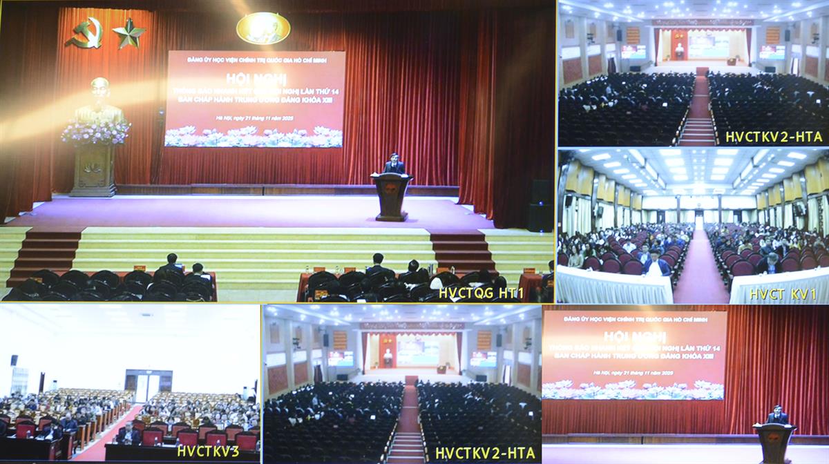 Thông báo tại hội nghị, PGS,TS Đoàn Minh Huấn, Ủy viên Ban Chấp hành Trung ương Đảng, Phó Bí thư thường trực Đảng ủy, Phó Giám đốc thường trực Học viện cho biết: Từ ngày 5 đến ngày 6/11/2025, tại Hà Nội, Ban Chấp hành Trung ương Đảng khóa XIII đã tổ chức Hội nghị lần thứ 14.